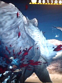 携帯に画像があったから貼り。左下で血しぶきをあげ攻撃してるのがMHドス時代の梟さんおっしゃれ~