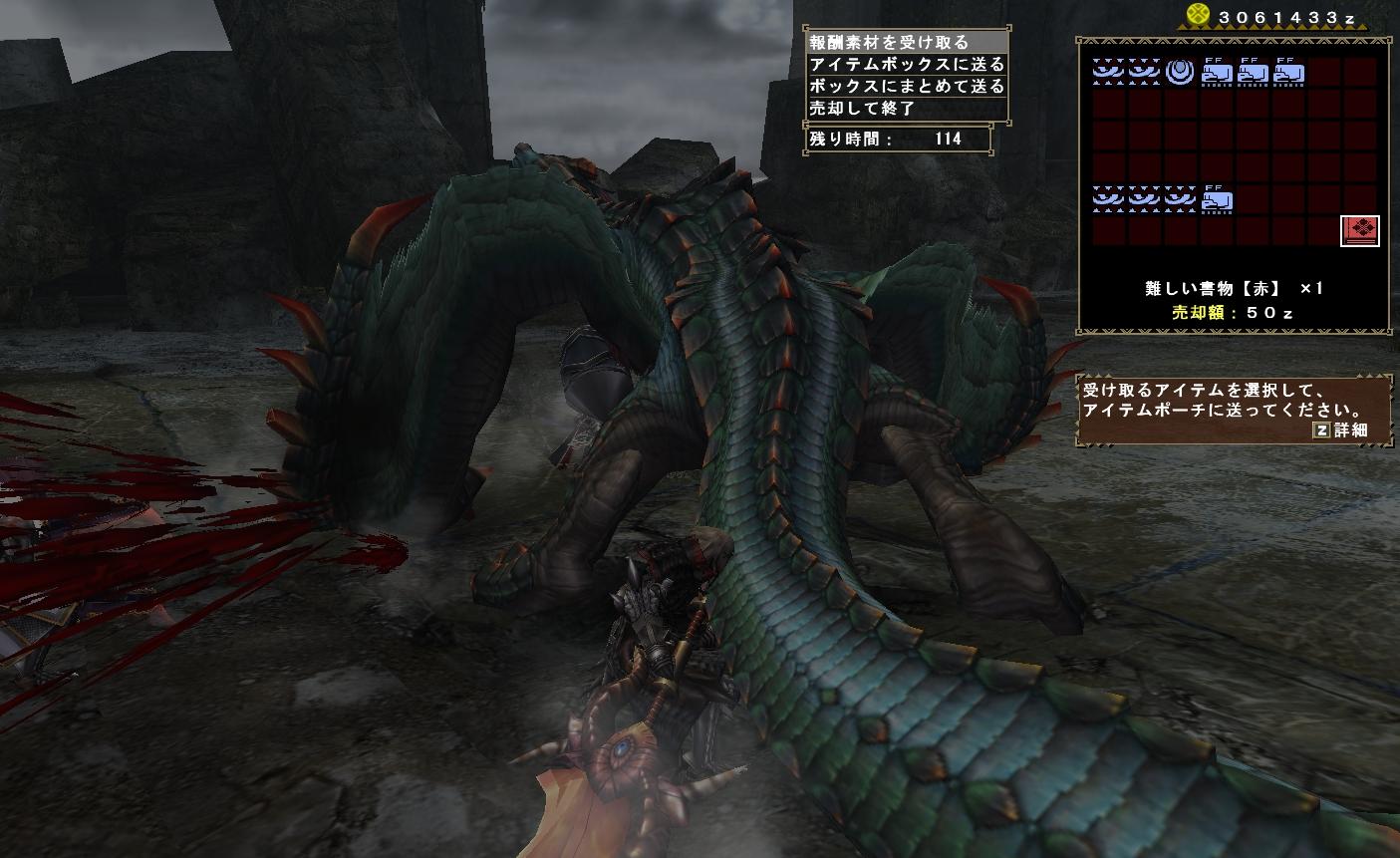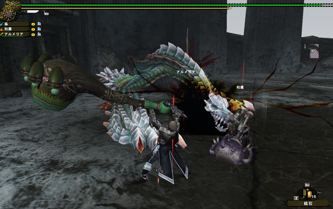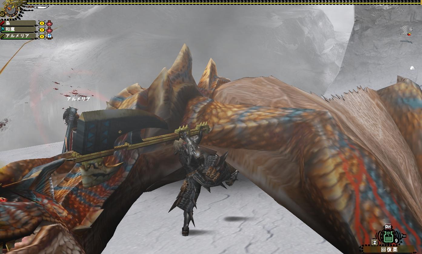 MHを長くやっている人なら分かるとは思いますがこのゲームは「あと1個」が出ないという呪いにかかっている。他の団員達はもう集まって新モーションでキャッキャ言いながら遊んでいる・・・これはデンジャーである