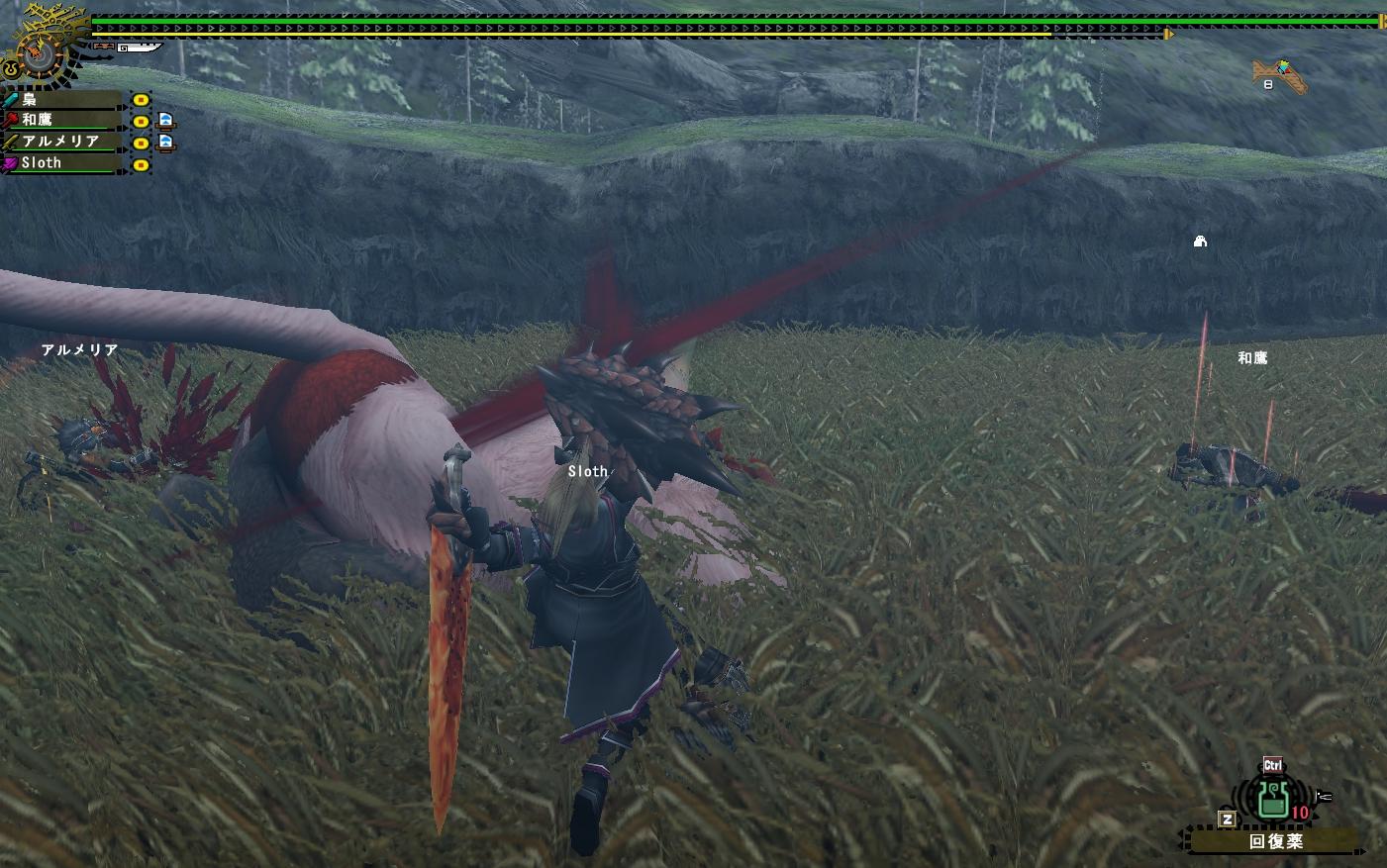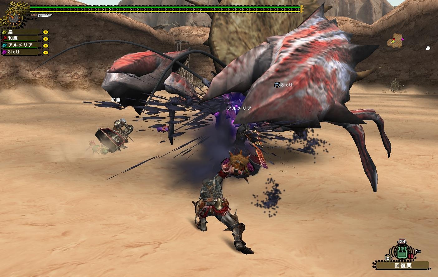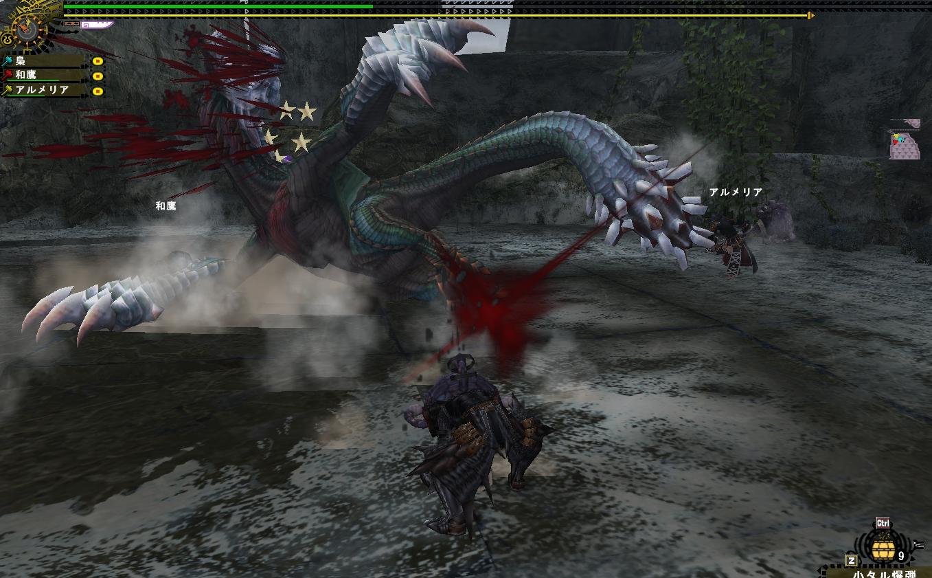 やれやれ、我が猟団飛虎はいつから効率を求めるようになったのか・・・いいかよく聞け!効率っつーのは・・・え?なにみんなもう集まってるのに梟さんの手伝いの為だけに連戦してくれてるって?サーセンすぐ行きます文句言いませんどさくさでカニも狩ります
