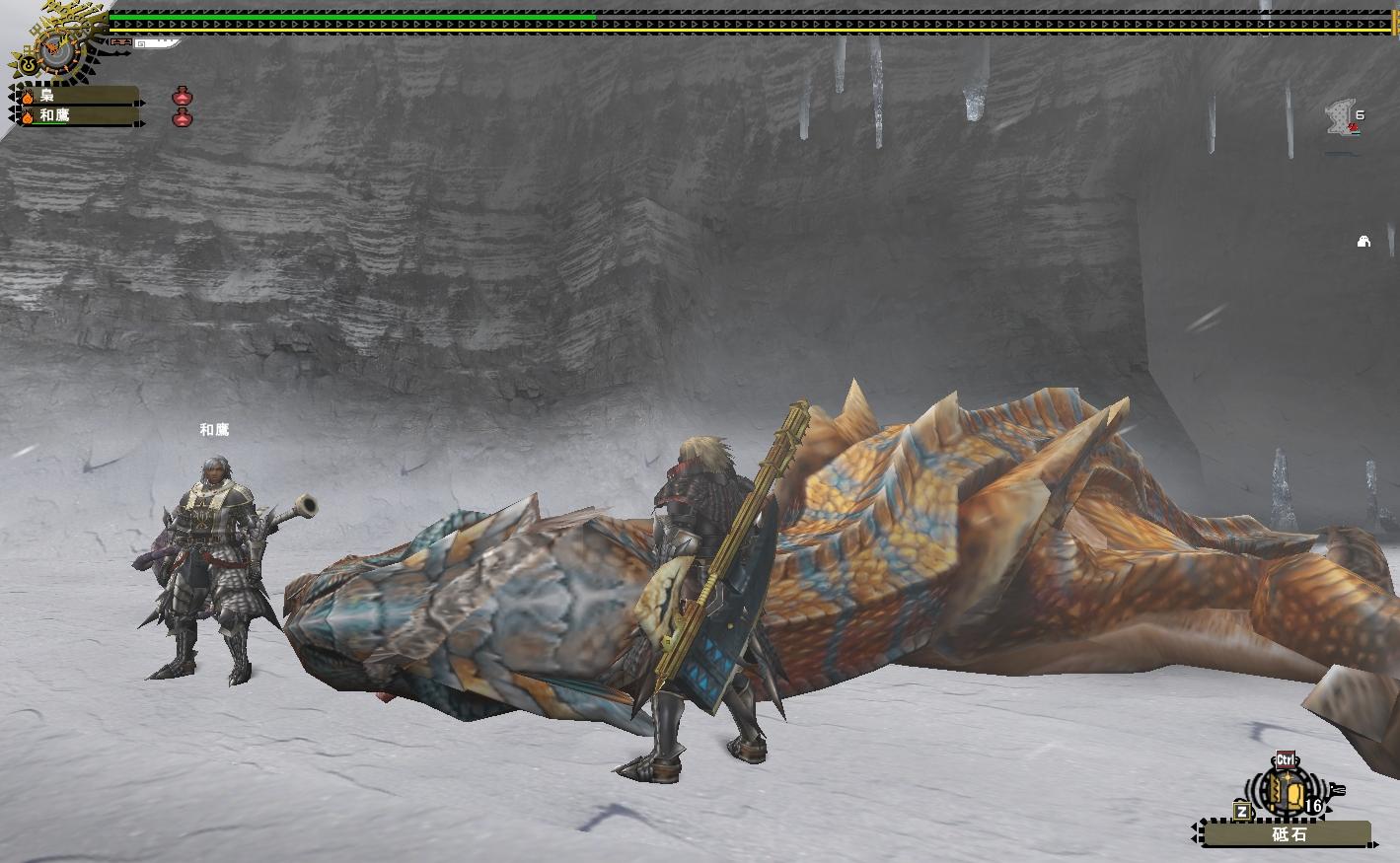 先日の定期メンテから実装されたなんちゃらとかいうクエに行ってみる。なんちゃらとかいう素材をGETしてなんちゃらとかいうガンランス作るぜ!いちいち素材や武器の名前覚えれるほど梟さんの脳みそにシワは無い、それが俺のジャスティス