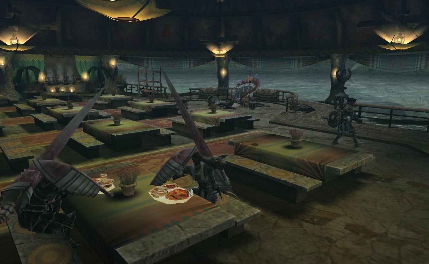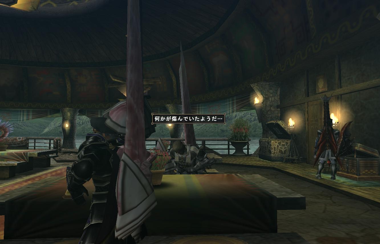 クエストの合間に男同士の居酒屋会話である。