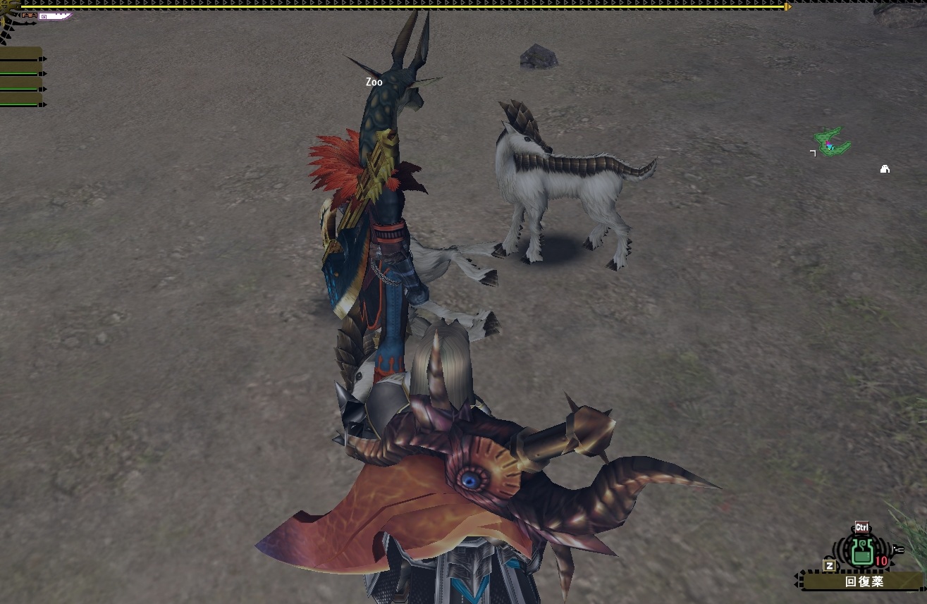 そのうわさを聞いてからしばらくZooはログインしなかった。キングオブ草食種の座を奪われる事を恐れたに違いない。そう、ただ単に飛び跳ねまくっているだけのケルビより人なつっこいコイツの方がハンターウケがいいという固定概念から軽いウツ状態になったのだ