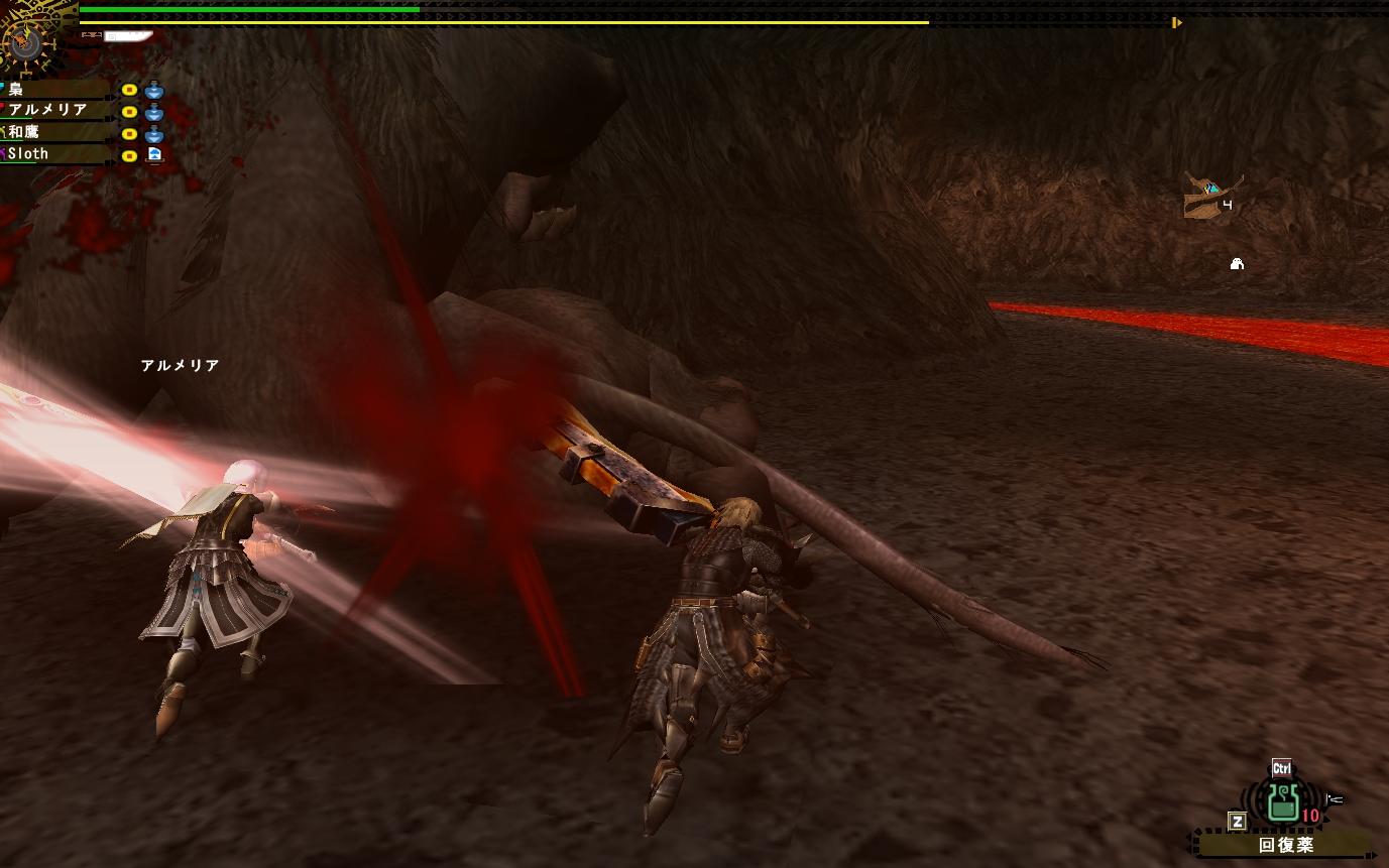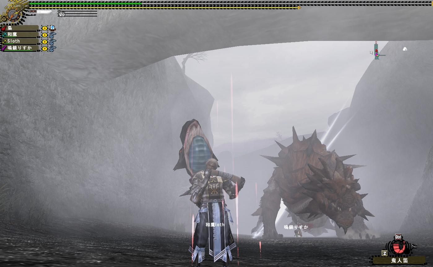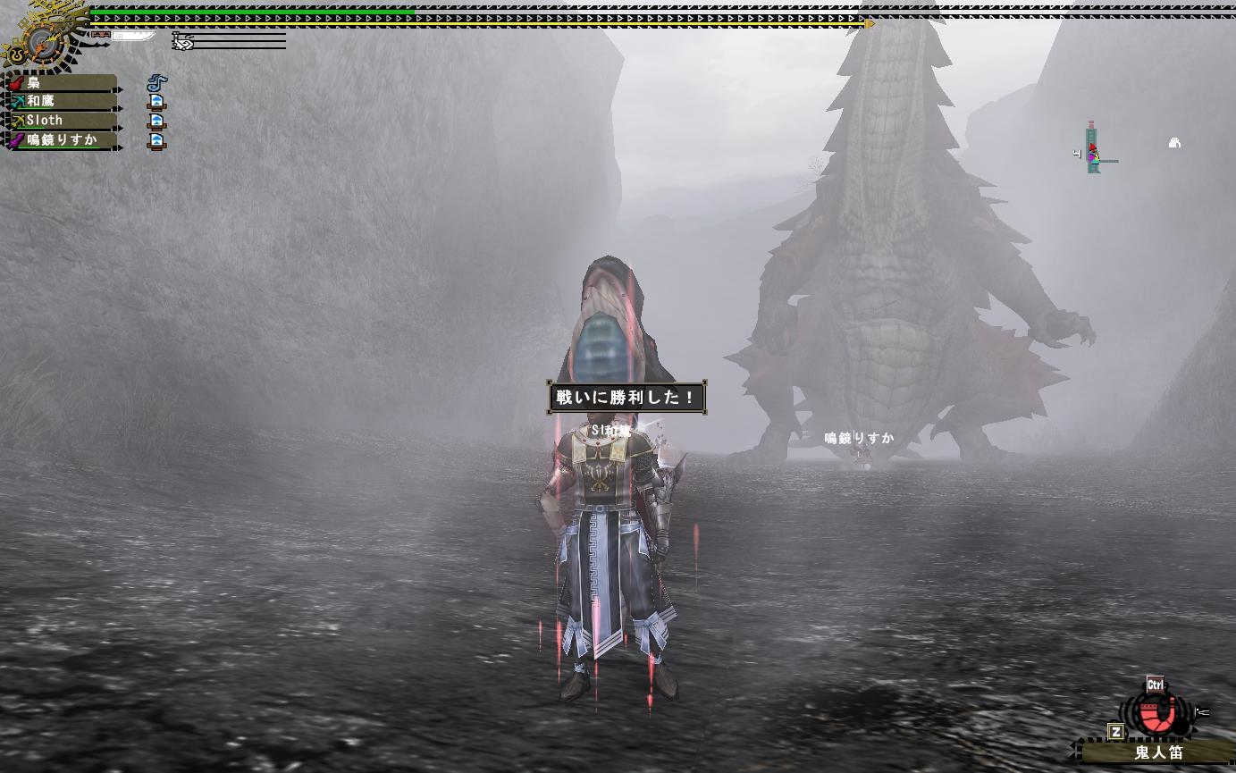 まぁMHFというゲームをどう楽しむかというのは人それぞれだが背中に火が付いたように狩り続ける(梟流奥義:カチカチ山)飛虎メンバーの楽しみ方は「狩り」しかない。まぁ狩りゲーなんだから狩りは当然で狩り狩り狩りで自己主張である
