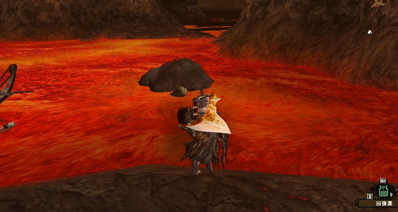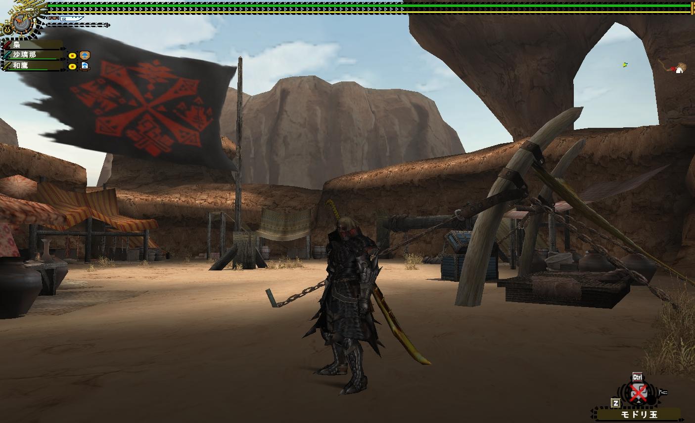 すぐ隣のエリアで凶暴なモンスターが暴れまくっていようともセーフティーゾーンとして使用できるベースキャンプ。結界かバリアか、はたまた「ここ入っちゃだめだよ」という男の約束か・・・MH7不思議のひとつだと言わざるを得ない