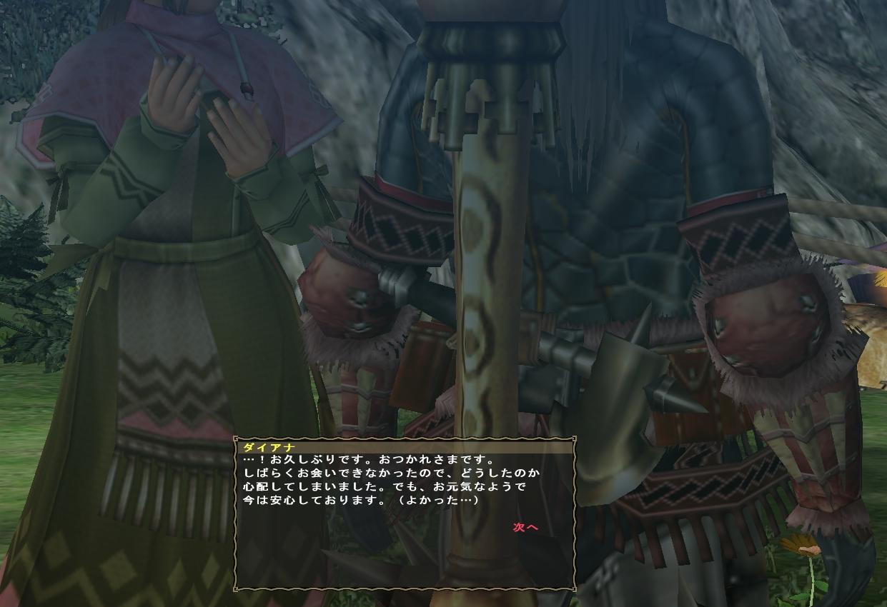 ちょこちょことログインしていたものの腰をすえてMHやるのは久々である。とりあえずマイトレに行ってみるとこのセリフ・・・管理人の大穴(ダイアナ)め、早速テク(テクニック)を使ってきたか