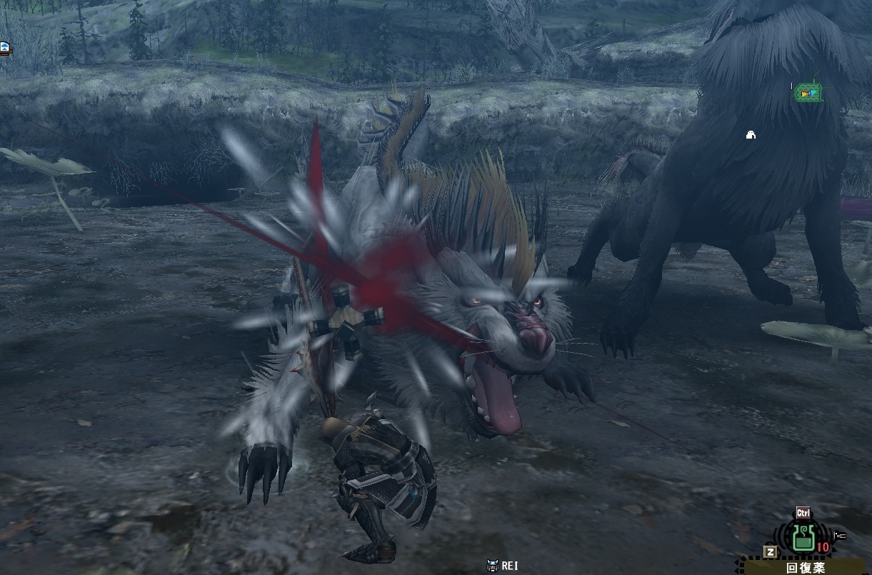 緊急回避として有効なダイブは完全無敵状態になるというチート仕様であるが、SSを撮りたいからといって罠にかかって捕獲寸前のモンスターを前に飛んでみるのはどうかと思う今日この頃。捕獲用麻酔玉投げろって?投げたらダイブできねぇだろうがッ