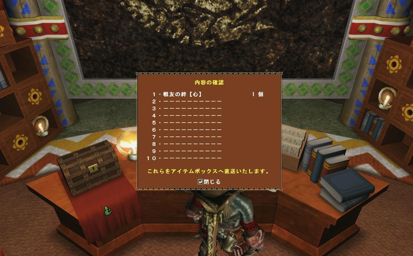 現在では狩人祭のポイント交換もさることながらギャラリー大会での取得も楽になった剛力珠。姉貴が休止する前はまだまだその辺が確立されておらず、「剛力=なかなか取れない」という方程式がなりたっていたものである