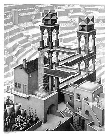 「※エッシャー」 ・・・・ マウリッツ・コルネリス・エッシャー(1898~1972) 版画製作で知られるオランダの画家。建築不可能な構造物など、独創的な作品を作り上げた事で有名。「エッシャーの騙し絵」