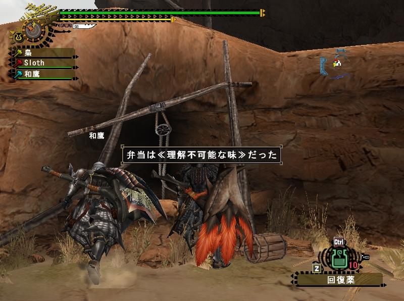 クエストに参加したら、参加者の誰かがサブターゲットクリアした時やモンスターの部位破壊をした時に「グッジョブ」と言うことを忘れてはならない。その際、グッジョブな人を抱きかかえ回転しながら宙に舞い上がり叩き落すとより興奮が伝わって◎