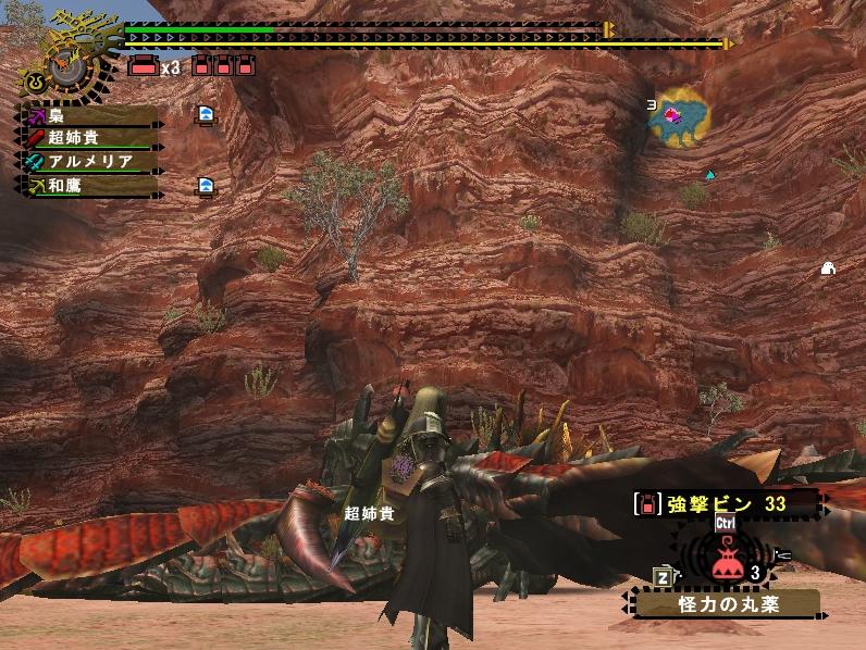 お約束の剛チケラージャンを足がかりに今日も狩り三昧。MHやれる時間が少ないならその分クエ時間短縮すればいいじゃないか!これぞ脳筋のススメ。街に戻るまでの1分間は20秒でいいよ!である