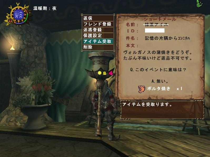 まぁ梟さんクラスのメゼポ通ハンターになると1~2日ろくにログイン出来なくても何ら支障は無いのである。街を歩く全ての女性ハンターさんの下着の色くらいは把握してるし、スロウスの彼女が髪を切ったこともお見通しである。色気づくなよ小僧・・・である