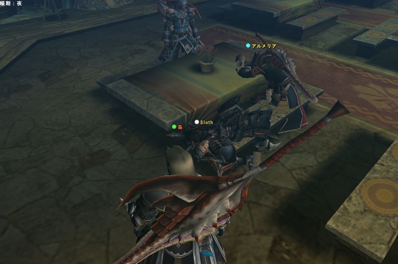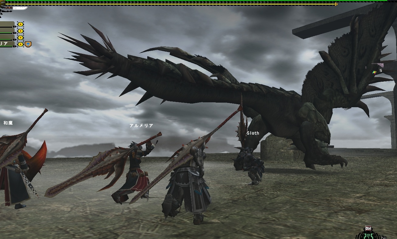 現在アクティブが4人という超少数猟団なのにランク13実装初日にはもうなってたなぁ・・・そういえばこいつらとももう数年の付き合いになる。いろいろあったねスロウスがうるさいとかスロウスがうざいとかスロウスがゴツいとか