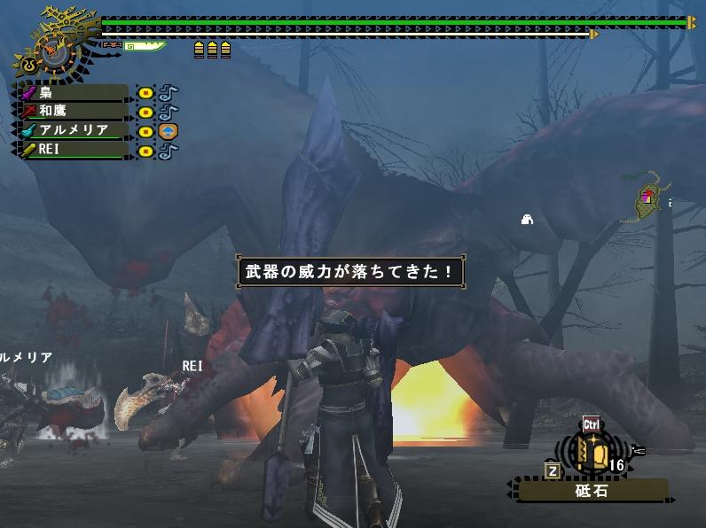 どんな敵でも狩りがやれるだけでぼかぁ幸せ者です。無駄に指が器用に動くのに狩りが出来ないんじゃぁ宝の持ち腐れじゃないか!パソコンがあるのに電気が無いみたいなものだと言わざるを得ない