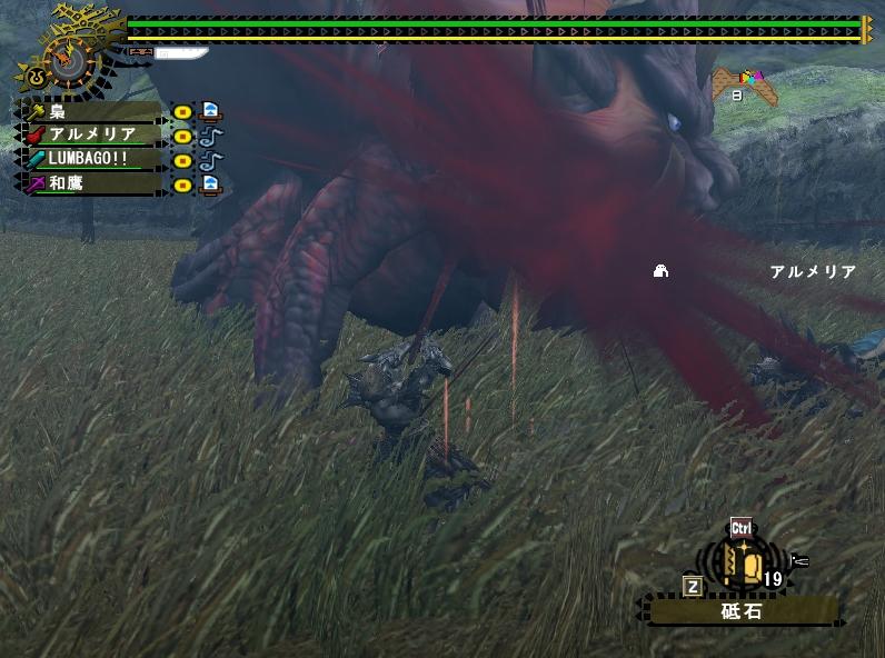・・・と鬼気迫る狩り。7時間耐久ラージャン中は昼飯ですらタクヤ・キムラばりのウィダーインゼリーであることは言うまでも無い