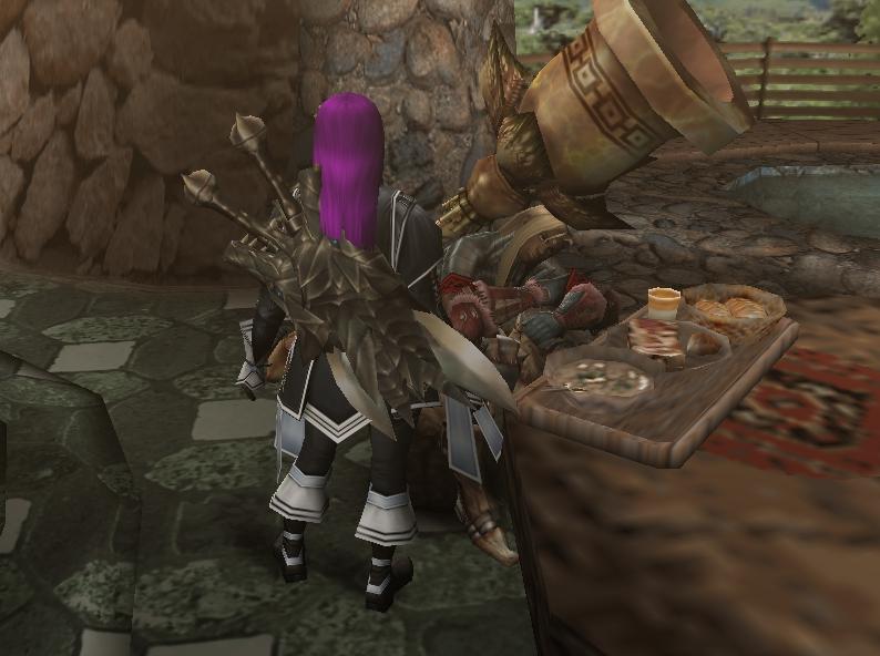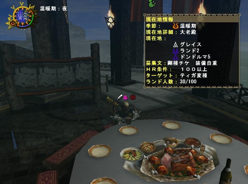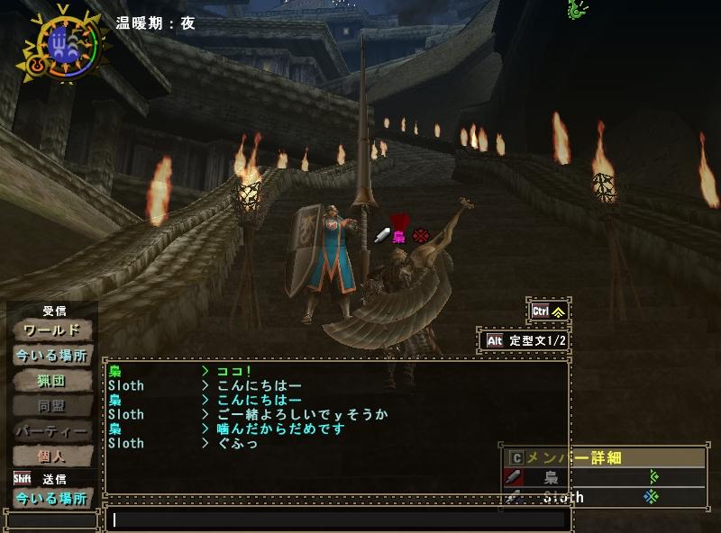 今日の夕方に「うさぎHEYHO」のせりちゃんから貰った頂きものをうpした後急ぎ足でドンドルマ。今日あたりから団員達の生活パターンも復活し、ぼちぼちのログイン率でございます