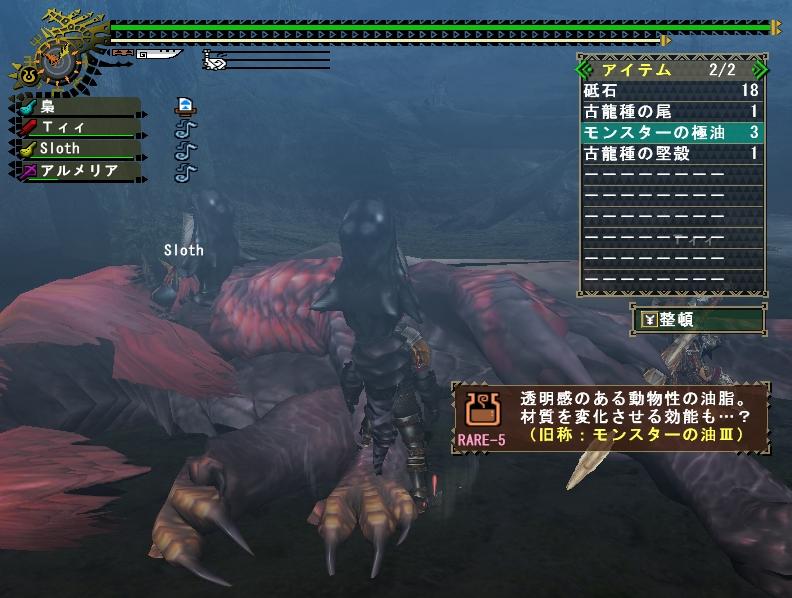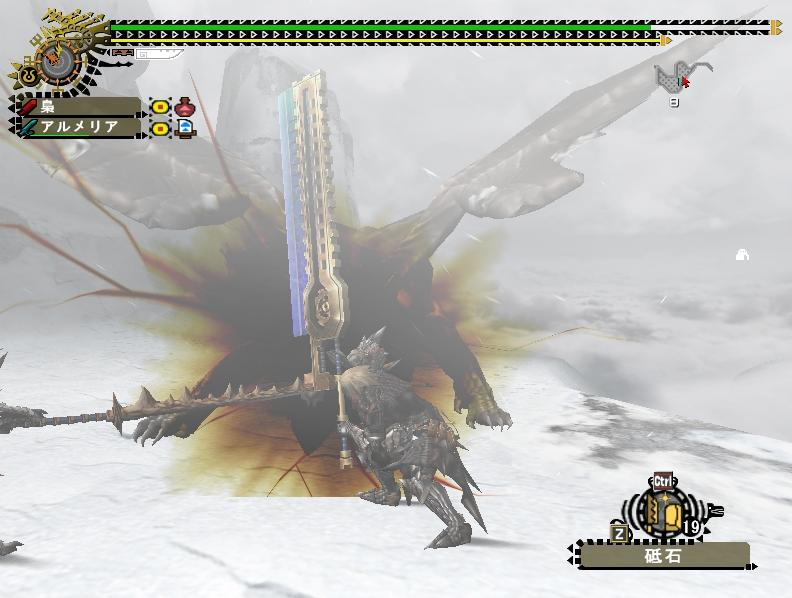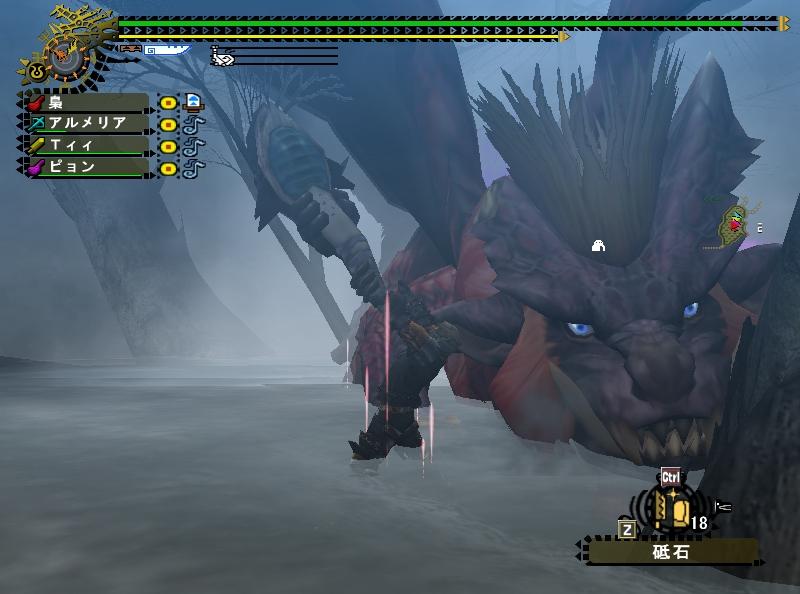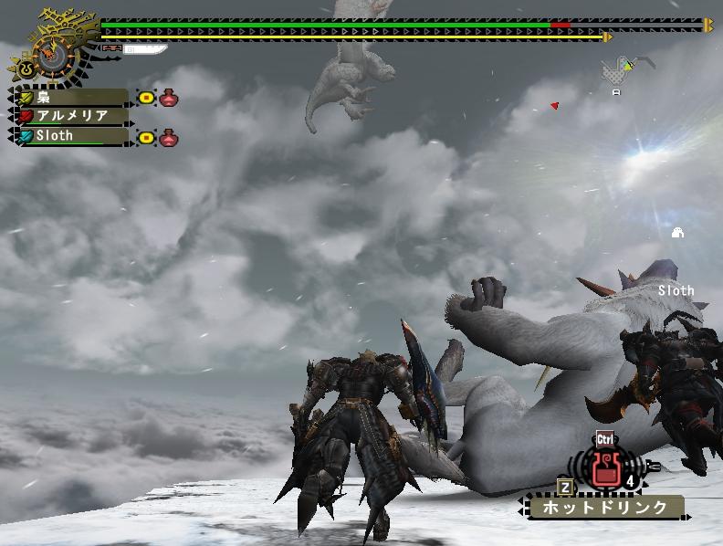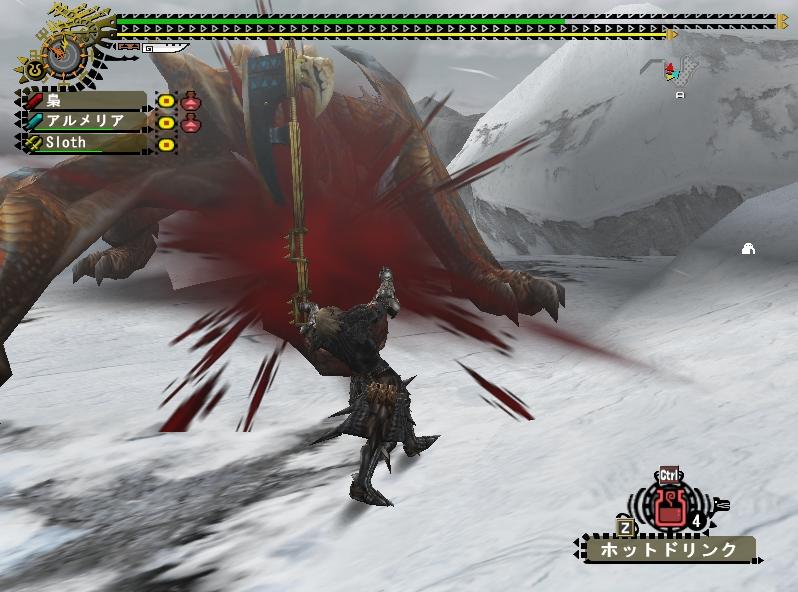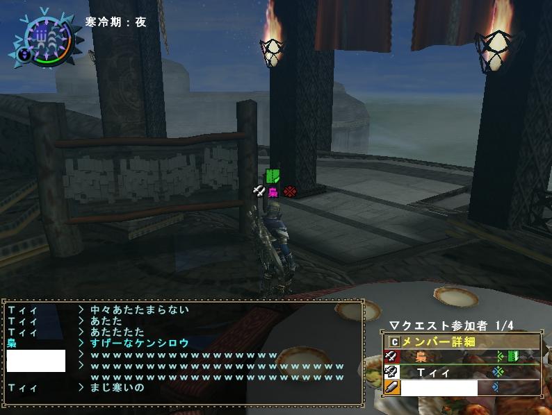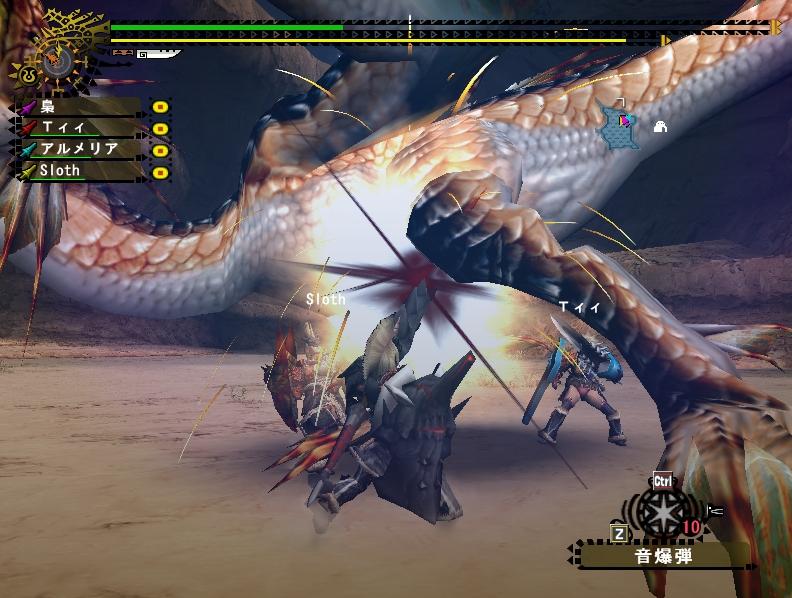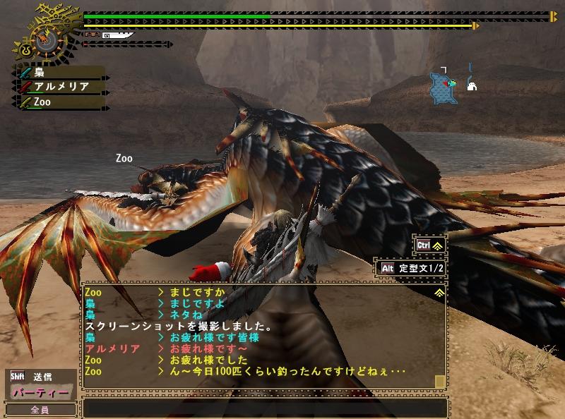 いつも団員ばかりで閉鎖的な狩りをしている事が多い飛虎だけに、他の団の人とか来ると新鮮ねぇ。まぁ最近じゃ年末年始で団員のログイン率が悪かった事もあり4人以上の大人数は久しぶりだぜ。だが誰とクエに行こうとも俺が一番の火力をたたき出してやる!・・・という子供のような発想である。
