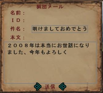 毎日のように団員達と狩りに明け暮れ、笑い、怒り、悔しがった2008年ももう終わる。確信できるものと言えば2008年梟さんの合計睡眠時間より、合計狩り時間のほうが長いという現実。いろいろあったネ