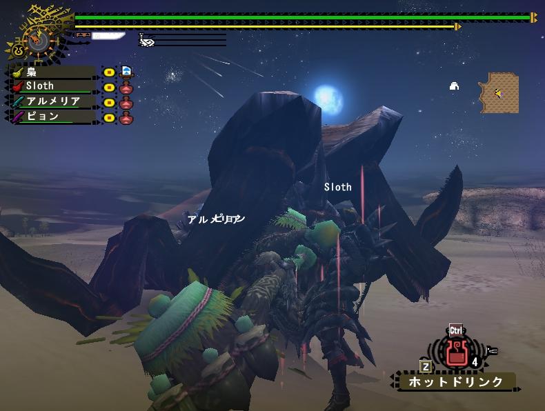 ベルキュロス剛種のクエ中、急にスカイプがミュートになるスロウス。「落ちたかな?」と思いきやキャラは元気に動いている。。