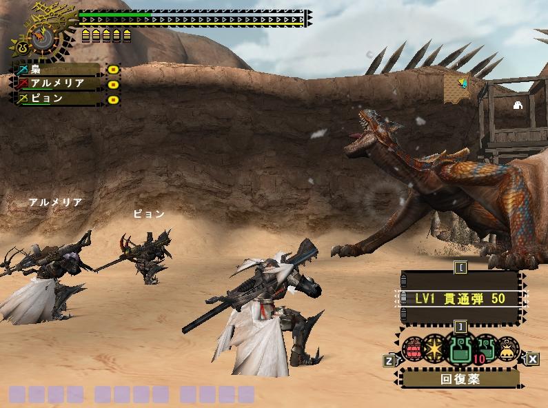 まぁディアを狩ってるのかランゴスタを狩ってるのかよく分からない画像ではありますが相変わらず飛竜種の骨Ⅲを求めて砂漠に通っております。骨Ⅲが集まったのかどうかその辺は昨日の日記からの流れでお察しくださいということで割愛