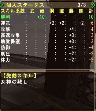 防御力191・サンタ帽一箇所で勝手に発動した女神の赦しが少々セコイ気がしないでもないですが発動する自信は無い
