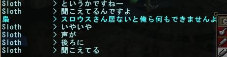 ベルキュロス剛種のクエ中、急にスカイプがミュートになるスロウス。「落ちたかな?」と思いきやキャラは元気に動いている。。