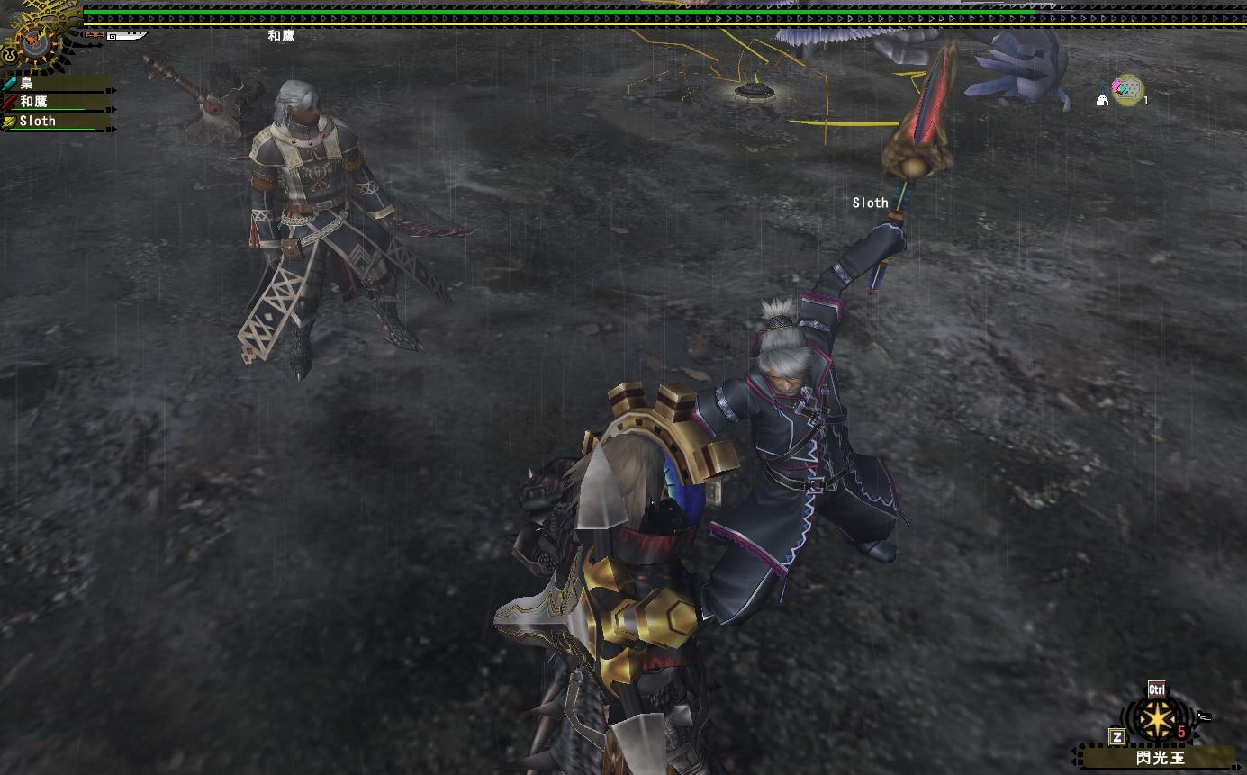 ヤマツカミが動いた反動で体が宙を舞うスロウス。普通の人間なら落下=死を意味するがハンターはこの程度の高さなら死ぬ事はない。落ちた所に槍が出てね刺さればいいのに
