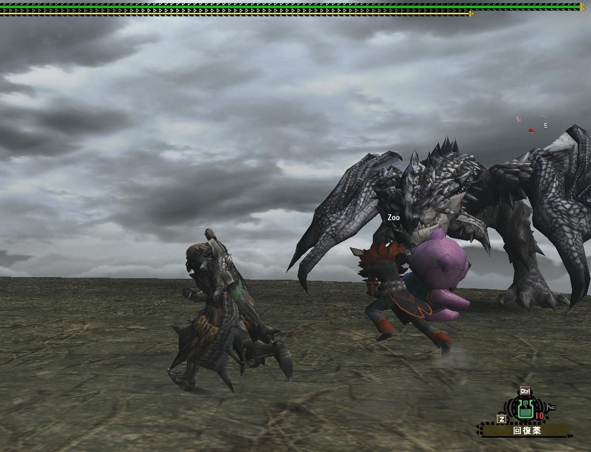 冷静になり話を聞くと、なんでも新たに双剣の新モーションに手を出したのでSR稼ぎを一緒にヤラナイカ・・という事らしい。「言いづらい」というのはまだ双剣のSRが下位レヴェルの為、やや寄生する形になるけどいいですか?って事らしい。水臭いな、うわっ!マジで水くせぇ!洗濯物半乾きの臭いだ!である