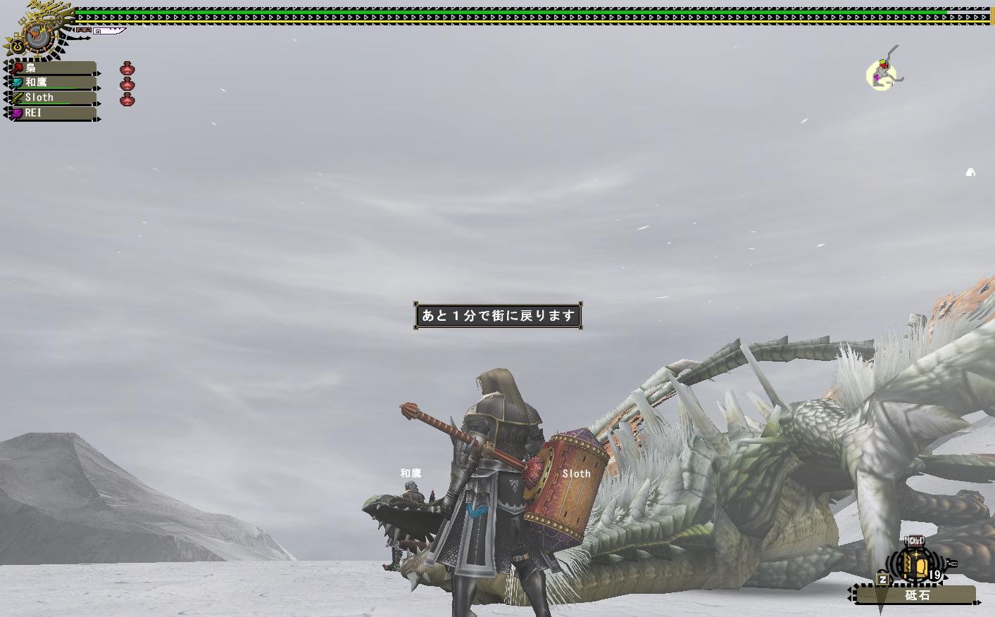 しかしドンドルマの街が崩壊したFでは一体どこの街に戻ると言うのか。まぁこのブログにも未だに「ドンドルマカレンダー」を貼っている梟さんが言うのもどうなんだと突っ込みを入れたくなるだろうが真のハンターたるもの言っている事がブーメランでなくてはならない。言葉すら武器と化す、ペンは剣より強し、幕末致し方なし・・である