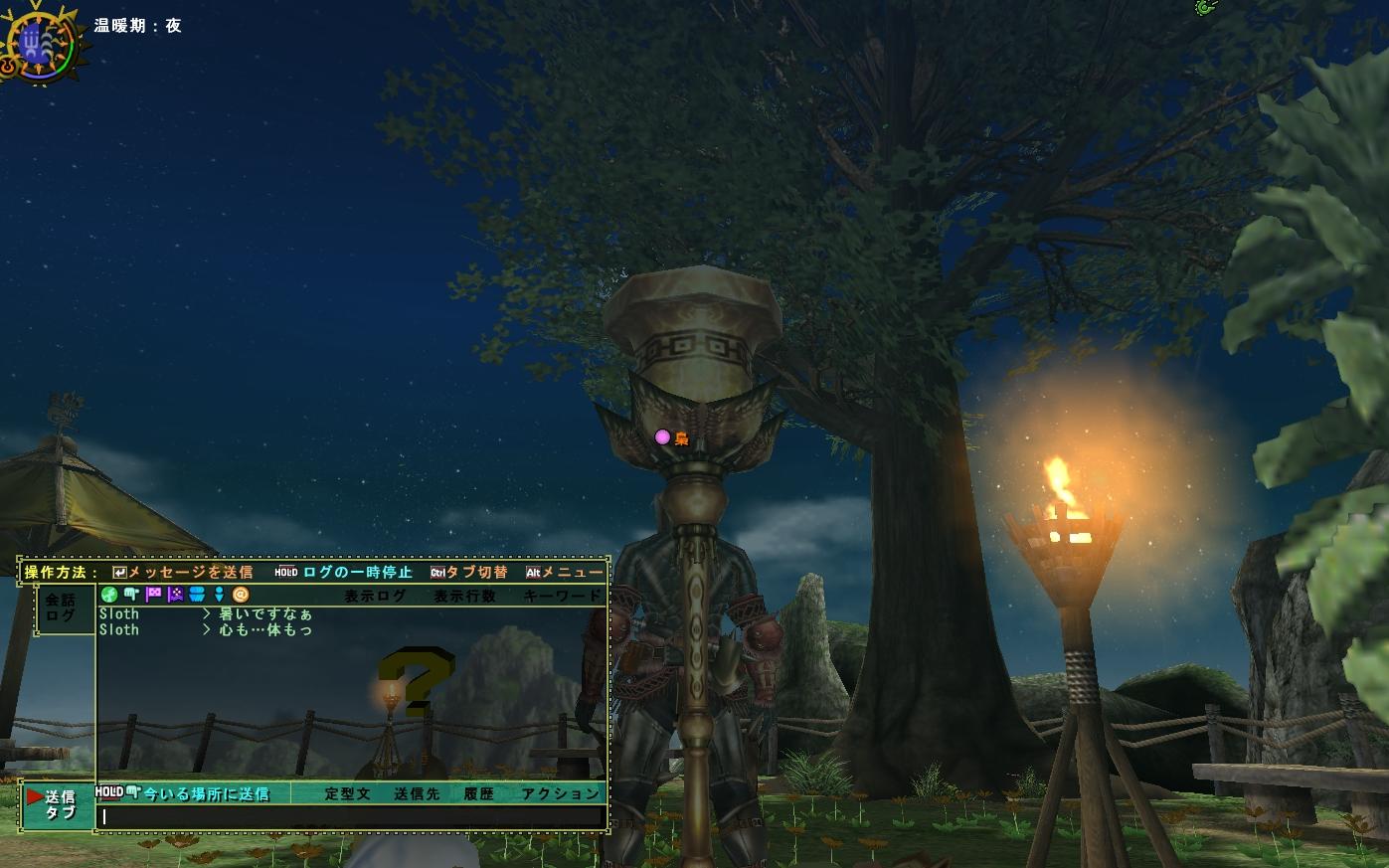日中の暑さからようやく開放され、涼しくなった夜のメゼポルタでかわい子ちゃん数人とキャッキャウフフする夢を見ようとまどろんでた梟さんだがその考えは甘かった。団内でも随一の「暑苦しい男」のログインであるあー暑苦しい
